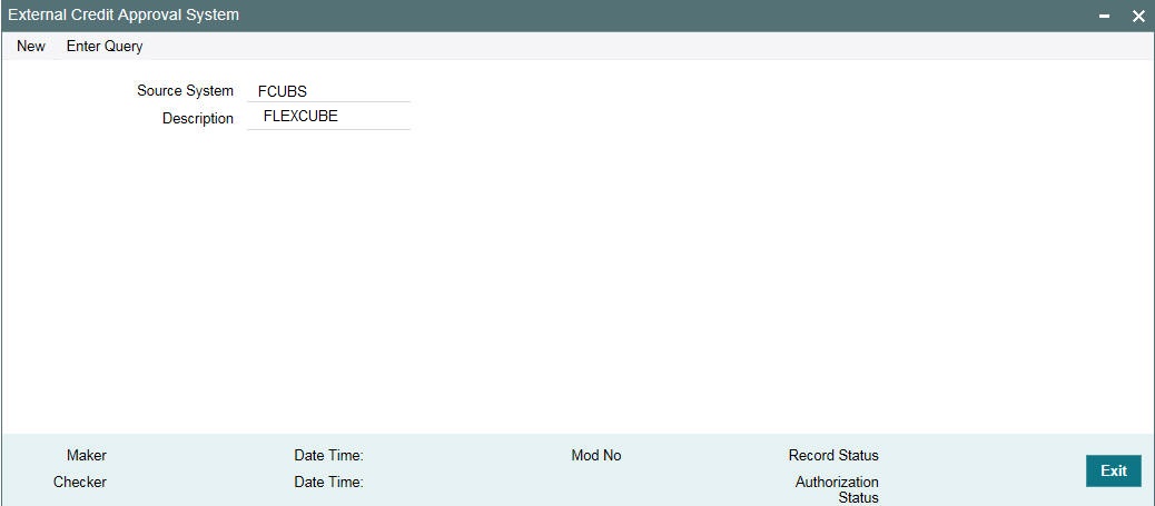 Specify the external system. For example, “OLINTSYS”, for integration with UBS system.