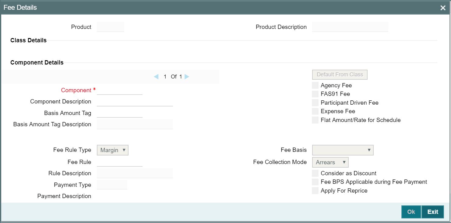 You can maintain accrual fee details for a product. These values get defaulted to ‘Amortization Fee Details’ (LFDACFIN) screen.
