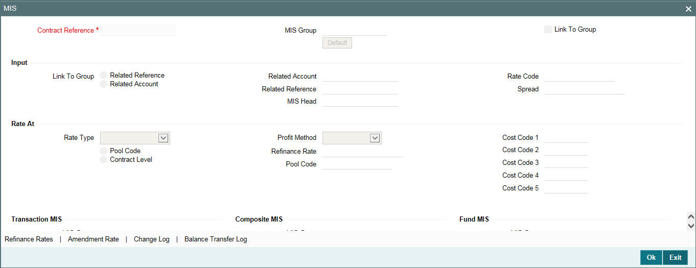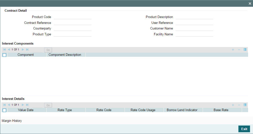 You are allowed to query the facility contracts in the field ‘Contract Ref No’. Upon querying the contract successfully, the other fields in the screen are populated with the relevant information.