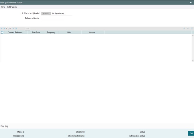 You can invoke the ‘Principal Schedule Upload’ screen by typing ‘LBDPSUPL’ in the field at the top right corner of the Application tool bar and clicking the adjoining arrow button.