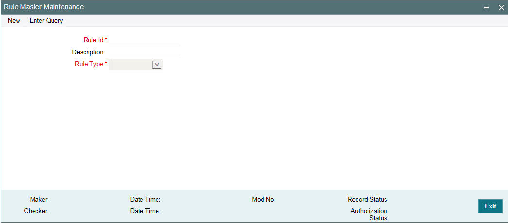 2.3.1 Invoking Rule Master Definition screen
