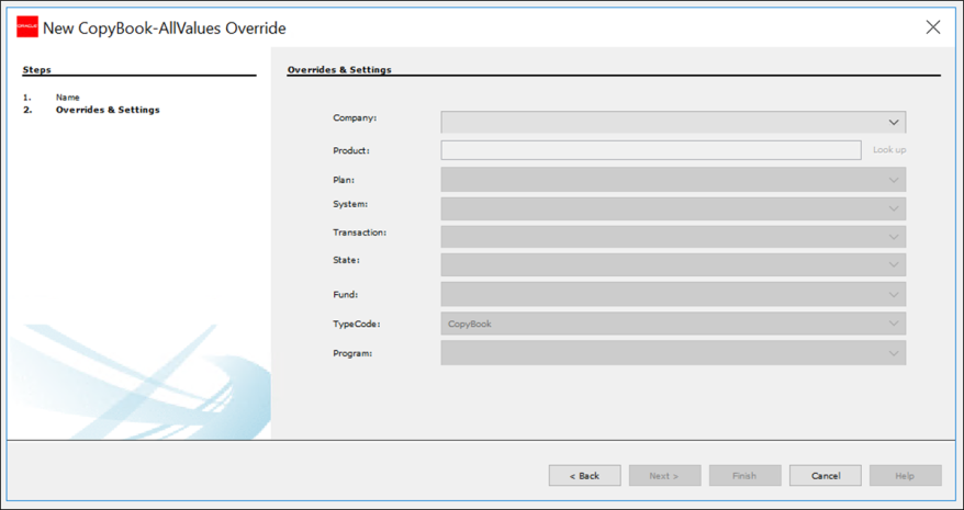 OIPA supports CopyBook overrides various levels. Refer to the CopyBook Override Levels section for details. The system will look for overrides at the lowest level and move up to global. When overrides are created, the Rules Palette Override Wizard limits the available levels according to what is supported in OIPA. Some rules have multiple contexts. The Rules Palette will not restrict those rules to any override levels.