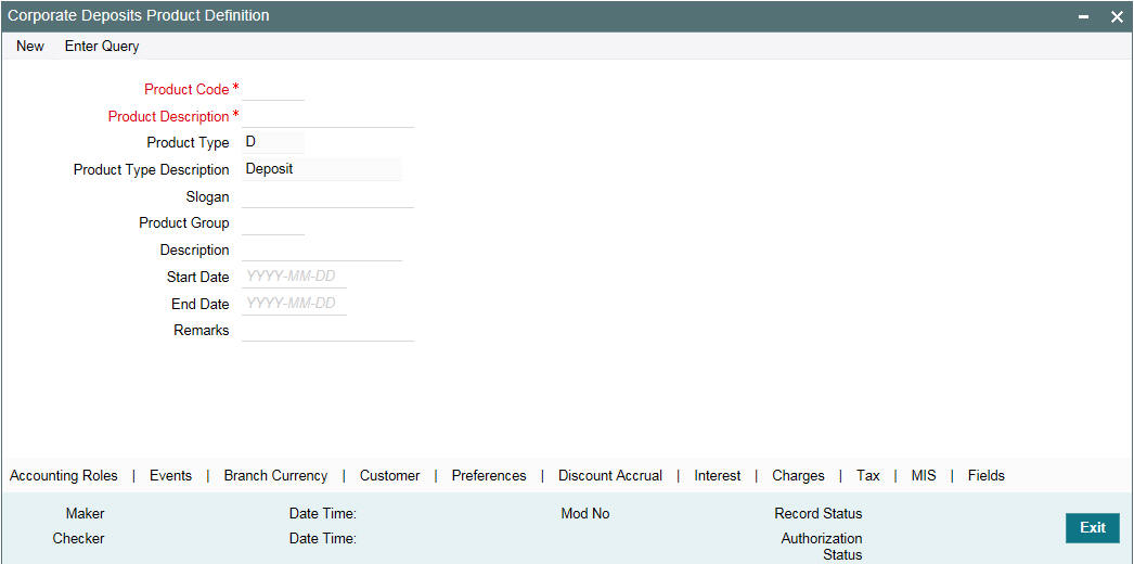 The corporate deposit product defined in the FCUBS, that is ‘Corporate Deposits Product Definition’ (CDDPRMNT) screen is sent to OBCL.