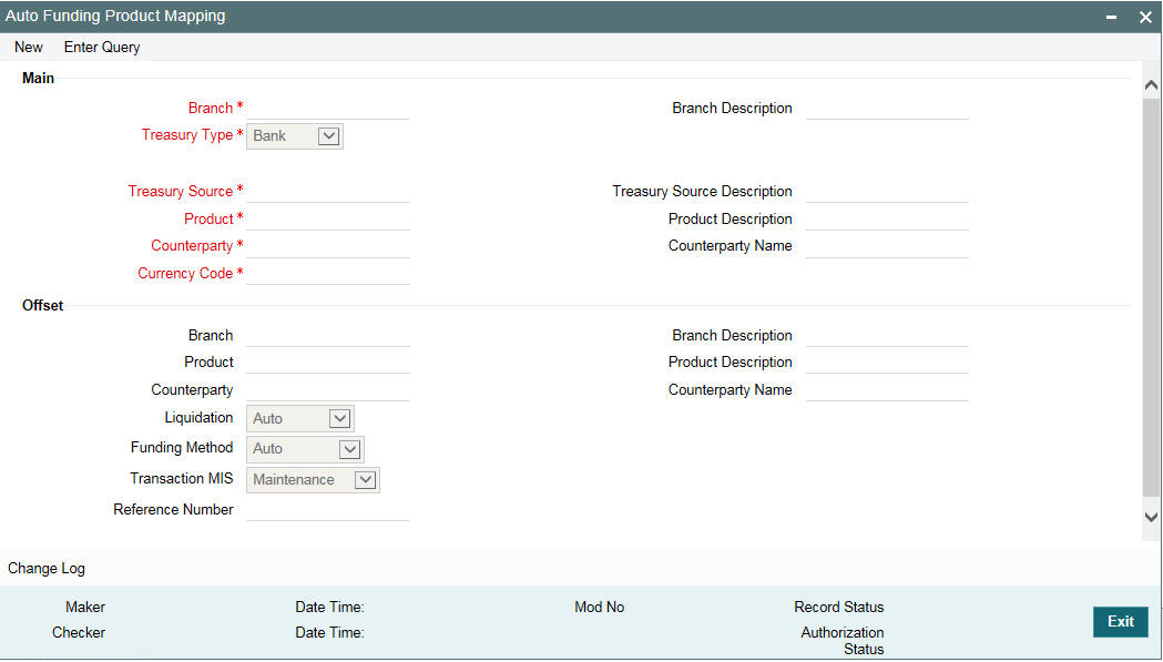 You need to enter the 'Branch', ‘Treasury Type’, 'Treasury Source', 'Product', 'Counterparty' and 'Currency Code'. Based on these loan contract parameters, the following deposit parameters are derived.