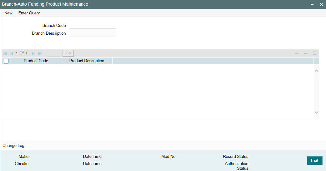 You can invoke the ‘Branch Auto Funding’ screen by typing ‘OLDBRAFP’ in the field at the top right corner of the Application tool bar and clicking the adjoining arrow button.