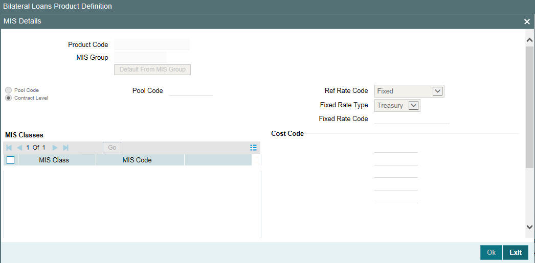 Type’, ‘Fixed Rate Code’ in Bilateral Loans Product