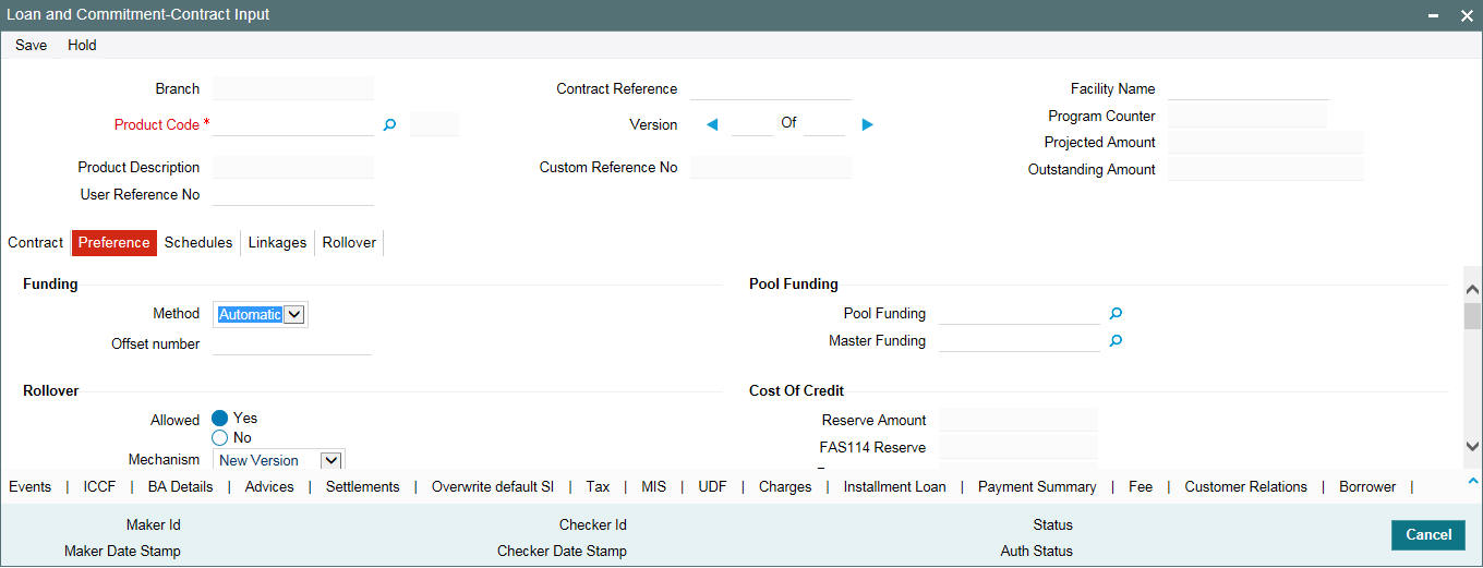 Loan and Commitment-Contract Input -MIS screen. Based on these rates,