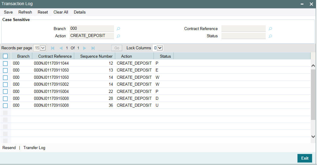 You can invoke the ‘Transaction Log’ screen by typing ‘OLSIFCD’ in the field at the top right corner of the Application tool bar and clicking the adjoining arrow button.