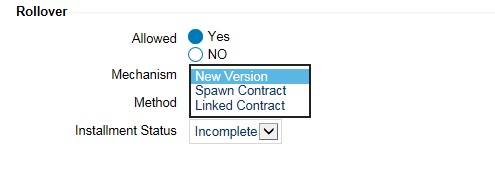 The rollover method specified for the product used by the contract is defaulted, and you can change it when you enter the contract, if required.