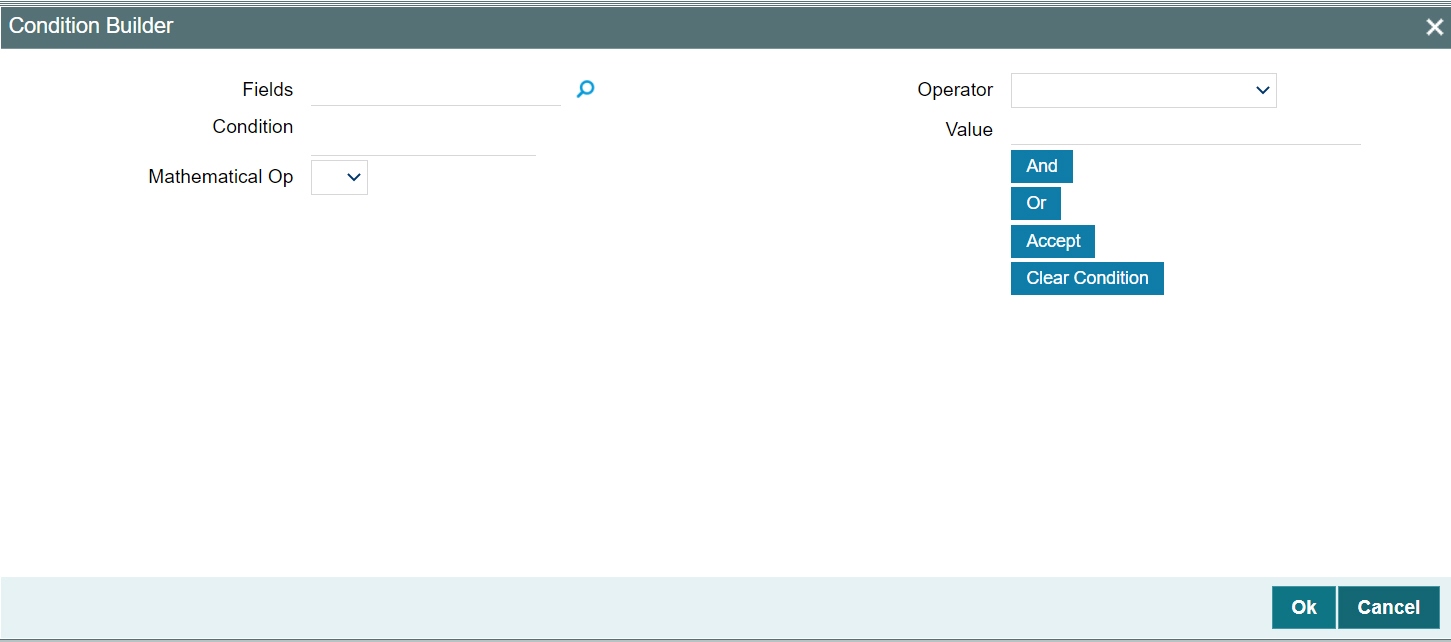 For details on building a condition using the options available in the screen, refer ‘Defining Events and Accounting Details specifically for a Product’ section.