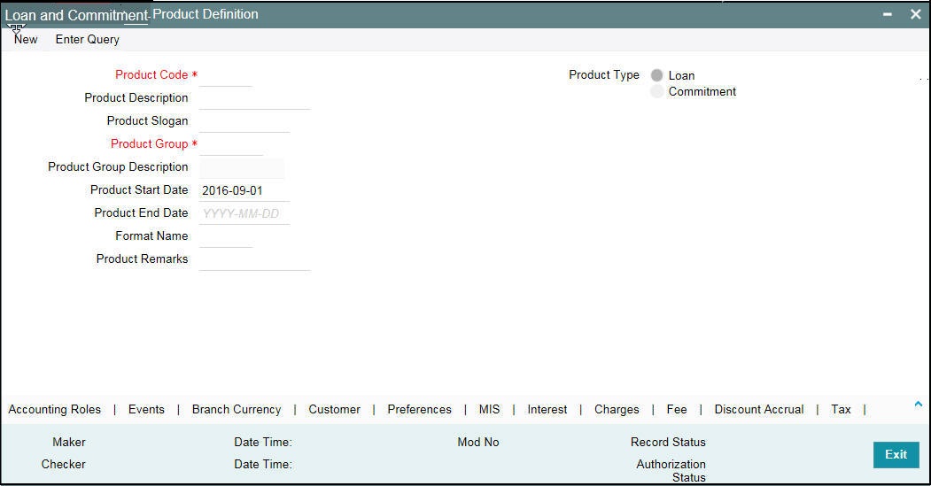 Product Definition screen is specific to a module. To create an LD product, for an instance, invoke the ‘Loans and Commitment Product Definition’ screen from the Application Browser. Similarly, to create an LS product, invoke the LS Product Definition screen from the Application Browser.