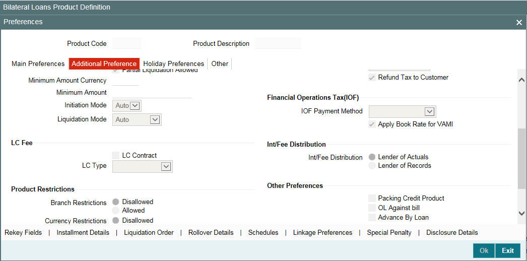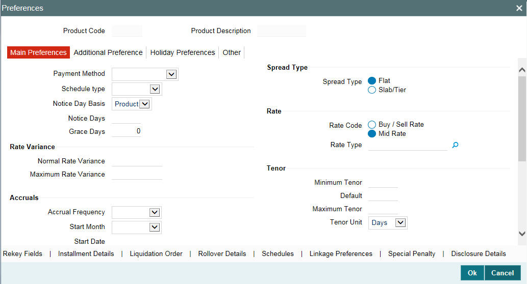 For products created in certain modules of Oracle Lending, you may have to specify additional interest details. These details have to be specified in the Product Preferences screen of the module. For more information about Products, refer to the respective Products User Manuals.