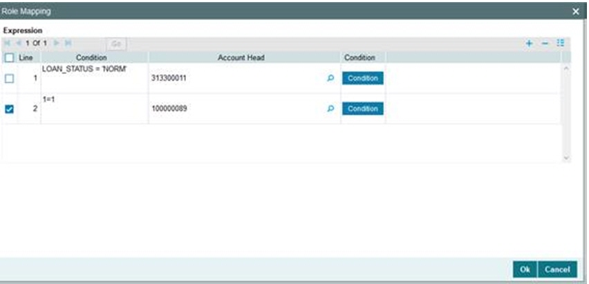 You can define multiple conditions and for each condition you can specify the resultant ‘Account Head’. This way you can maintain one to many mappings between an accounting role and an account head. Depending on the condition that is evaluated favourably, the corresponding account head is used for posting the entries.