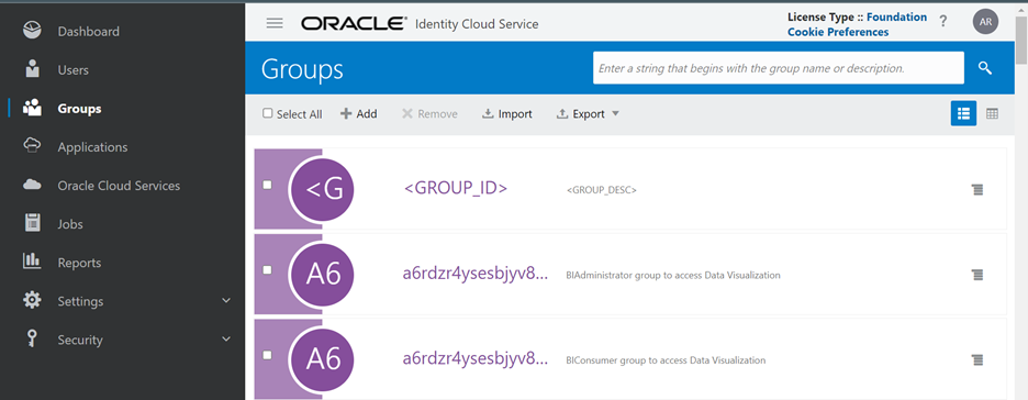5. Click on groups management and search for the group name created in IDCS Portal.