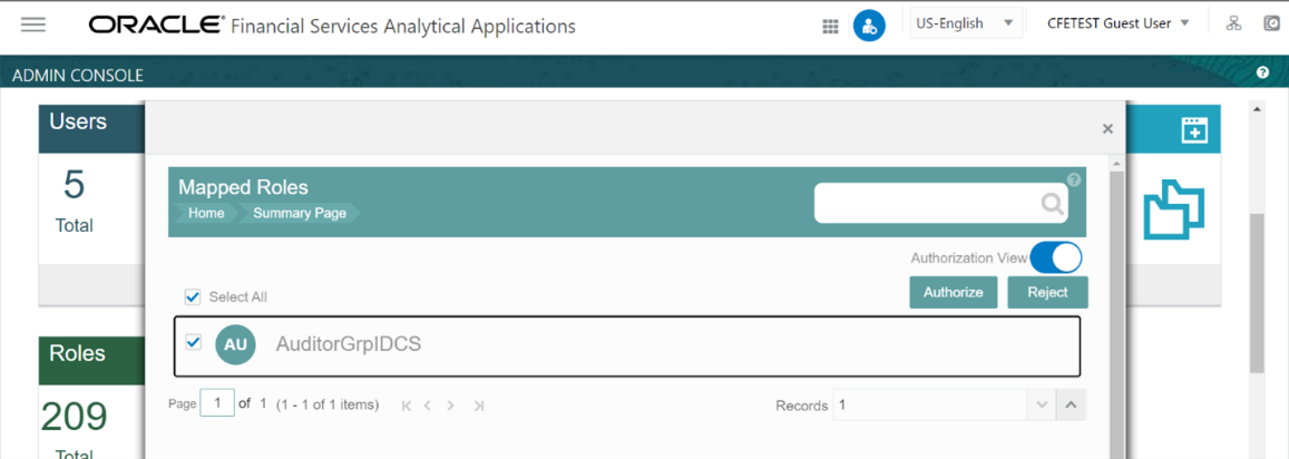 After a user sign into Cash Flow Engine Cloud Service (CFECS), the User to User-Group Mapping created in the IDCS Console will onboard into the Master and Mapping Tables. If you unmap a User from a Group in the Admin Console, navigate to the associated Console and open the Assign User to Groups window. Deselect the User corresponding to the User Group and click Finish. This is a mandatory step to complete the Unmapping Process.