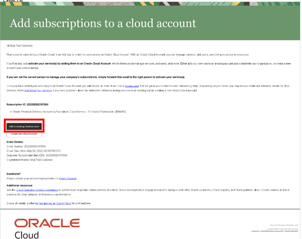 1. In the Welcome email, click Add to existing cloud account option.