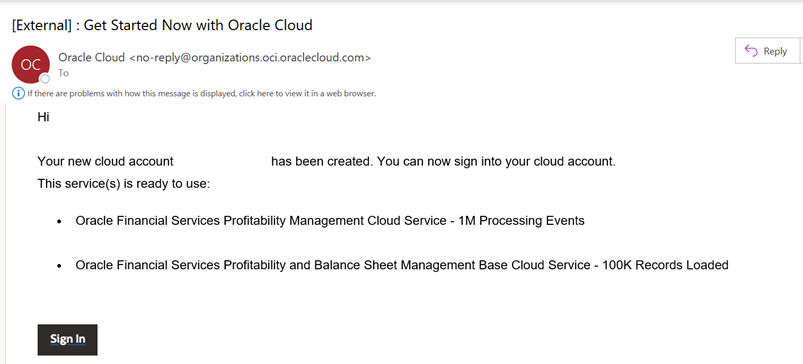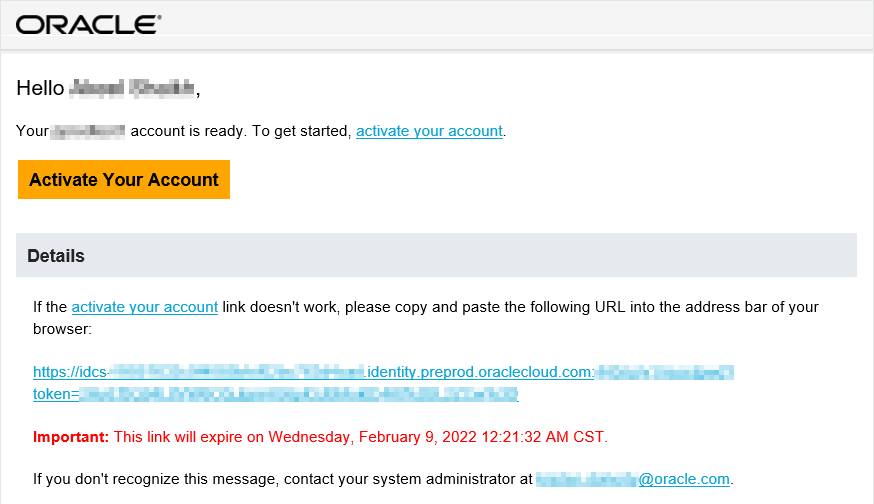 1. Open the email you received from Oracle Cloud.