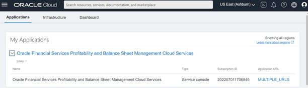 5. Navigate to the Oracle Cloud Infrastructure Classic Console, the Application URLs are displayed.