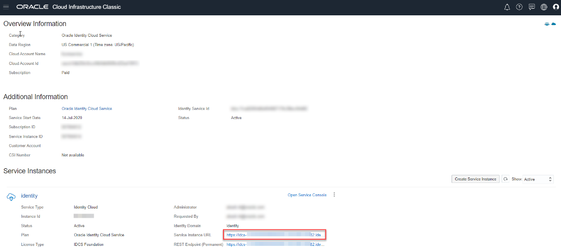 2. Click the Service Instance URL from the Service Instances pane to access your IDCS Console.