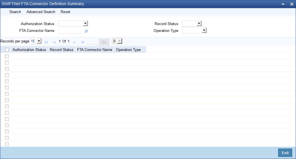 You can invoke “File Transfer Connector Configuration Summary” screen by typing ‘MSSFTACN’ in the field at the top right corner of the Application tool bar and clicking on the adjoining arrow button.