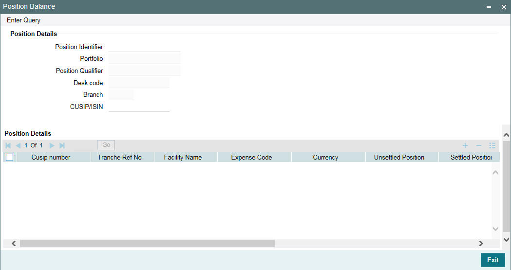 Select the position identifier or the branch-desk-expense code combination, to be used to track the position details of a portfolio. Position identifiers corresponding to all the portfolios defined for the current branch are displayed in the option list.
