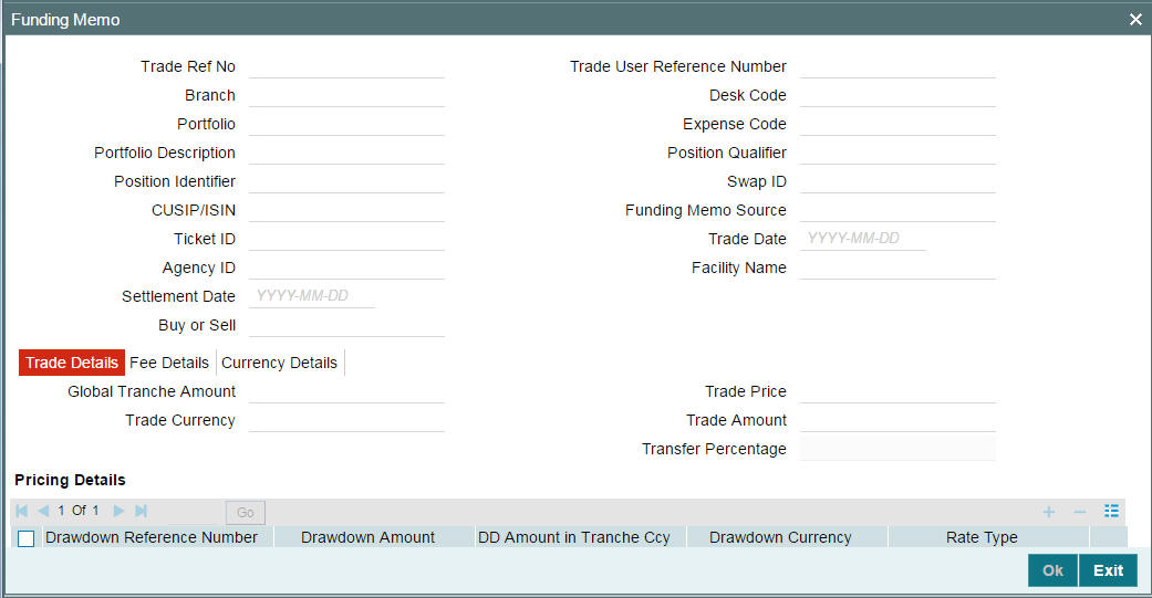 Except for trades originating from LB, you can use the ‘Secondary Loan Trading - Draft Trade’ screen to enter the details of the contract.