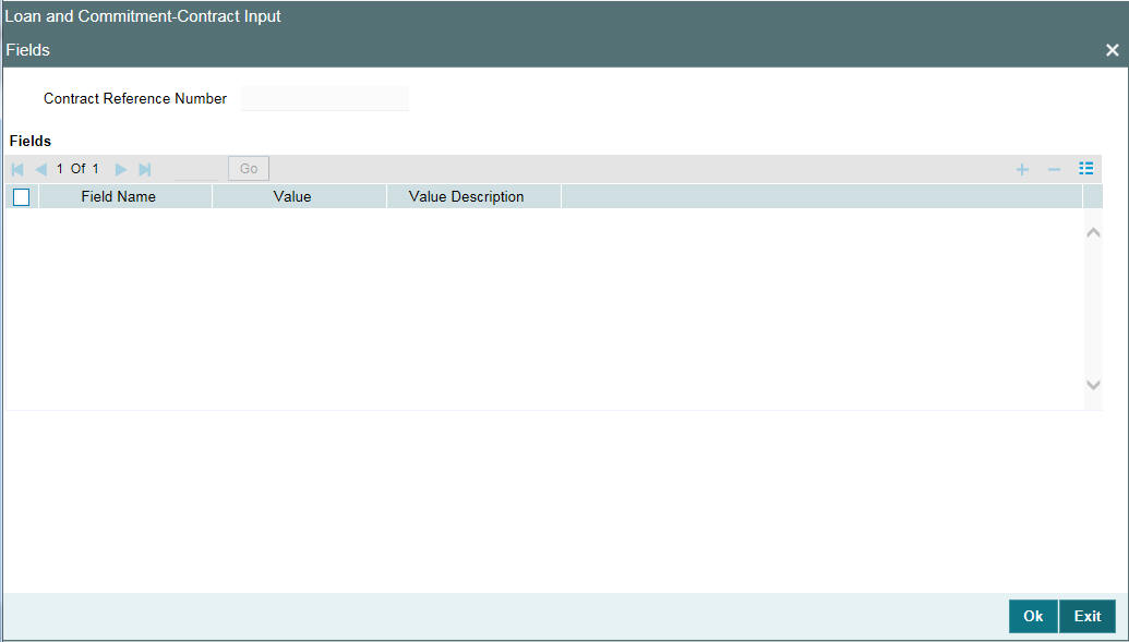 The UDF’s linked to a particular product are available when a contract is processed under that product. In the Contract Input screen, click ‘Fields’ button to invoke the ‘User Defined Fields’ screen.