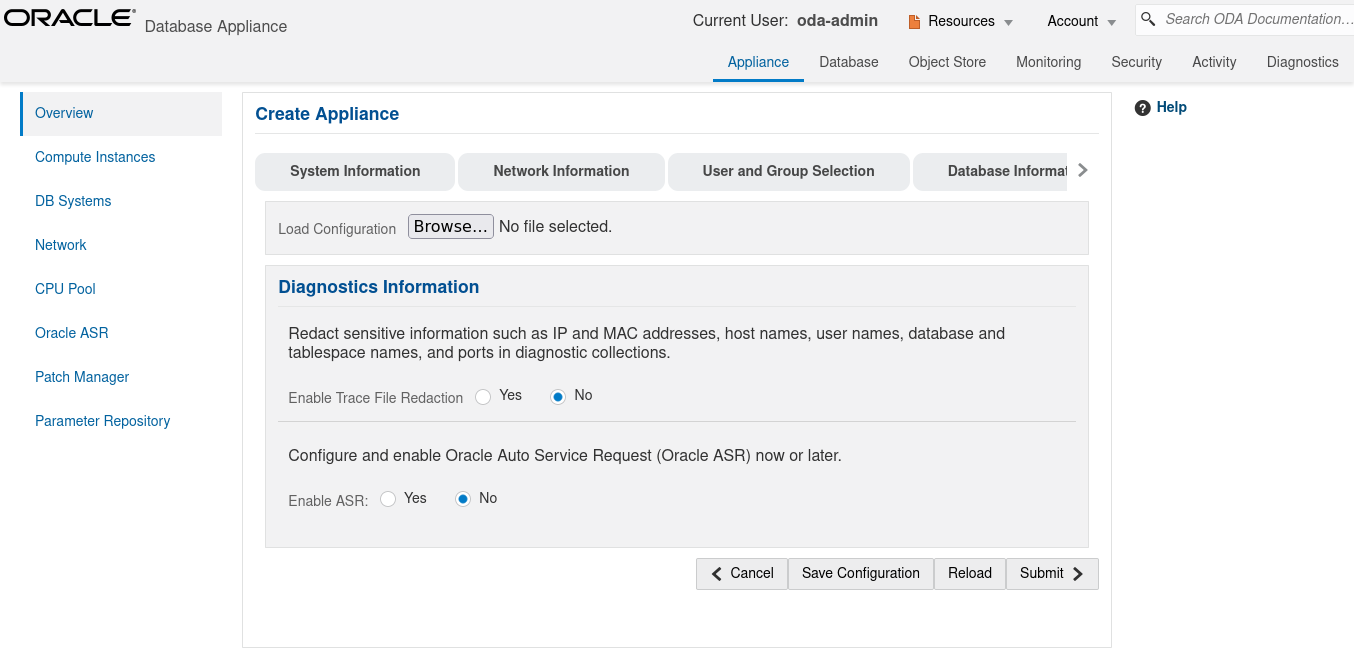 最初のネットを構成してリポジトリを更新したら、odaadminおよび以前に作成したパスワード(WELcome12##など)を使用してOracle Database Appliance BUIにログイン