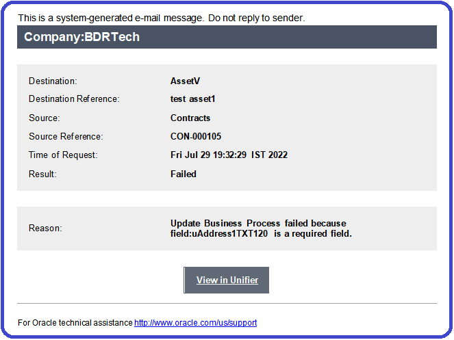 The Reverse Auto-populate (RAP) email messages will notify your if the RAP fails, during runtime, and include the following details for better traceability: