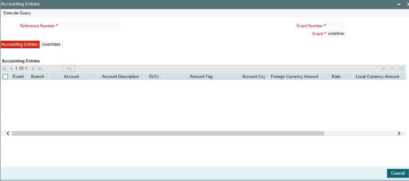After you enter ‘Module’, ‘Branch’, ‘Product Code’, and ‘Contract Reference’, then you can view the ‘Override Details’ and ‘Authorization Details’ section.