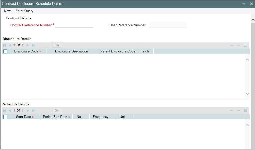 Specify the contract reference number for which you want to query the disclosure code details. This adjoining option list displays the all the contracts to which the disclosure codes are linked. You can select the required contract.