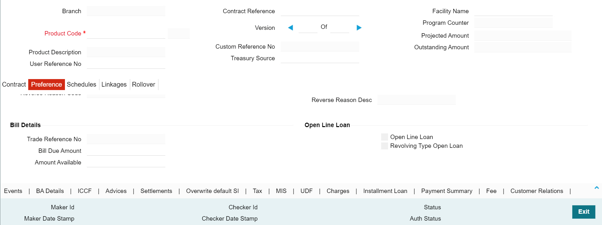 To use a template you should enter the details of a loan by specifying the template ID of your choice in the OL Contract Details screen.