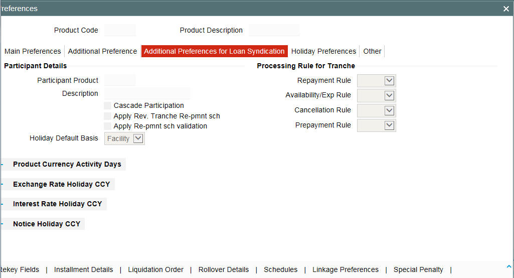 NoteThis section explains about those preferences that you need to set specifically for borrower tranche or drawdown products under a borrower facility contract.