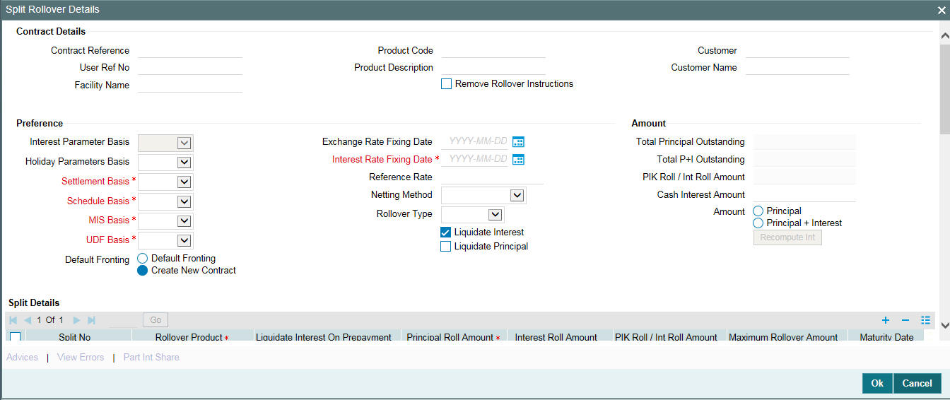 For information about ‘Interest Basis’ on Split/Consolidation Rollover, refer to ‘Interest’ User Manual.
