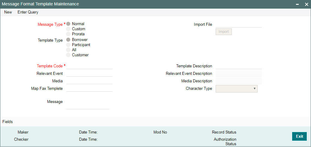 You can maintain templates for messages through the ‘Message Format Template Maintenance screen’. You can invoke this screen by typing ‘OLDFFTMP’ in the field at the top right corner of the Application tool bar and clicking the adjoining arrow button.