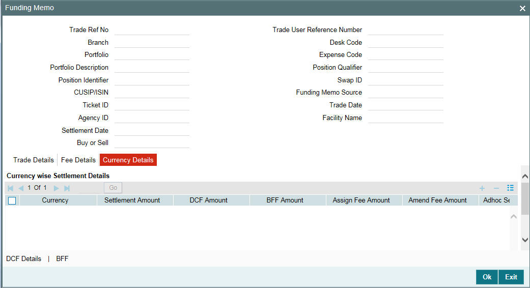 You can specify the following details related to the trade, in this screen:
