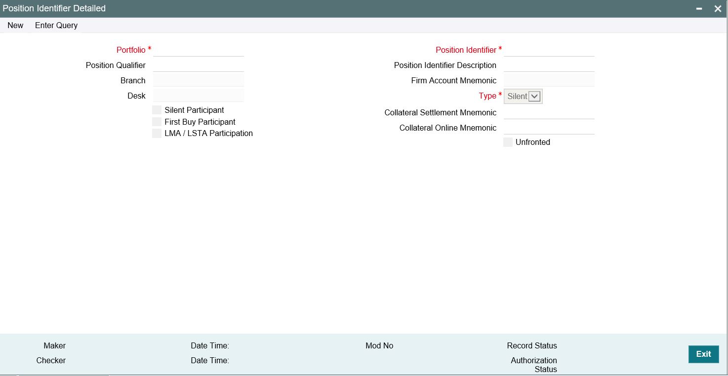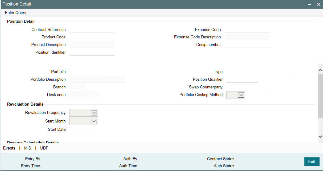 Select the position identifier or the branch-desk-expense code combination, to be used to track the position details of a portfolio. Position identifiers corresponding to all the portfolios defined for the current branch are displayed in the option list.