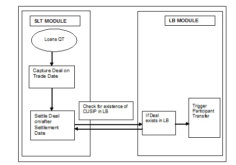 When the deal is settled and authorized in SLT, the transaction details flow to the LB module which in turn initiates a participant transfer event in the LB module.