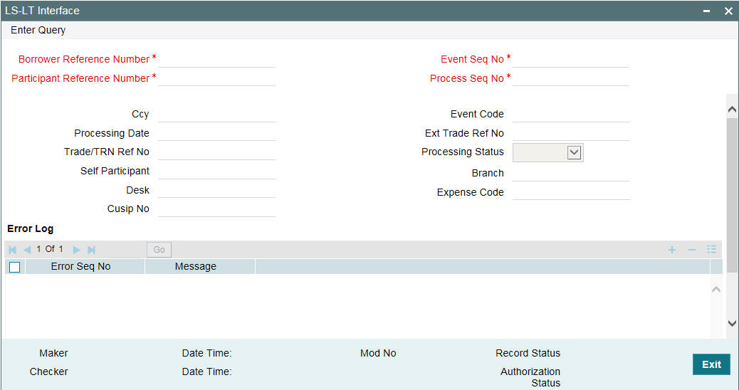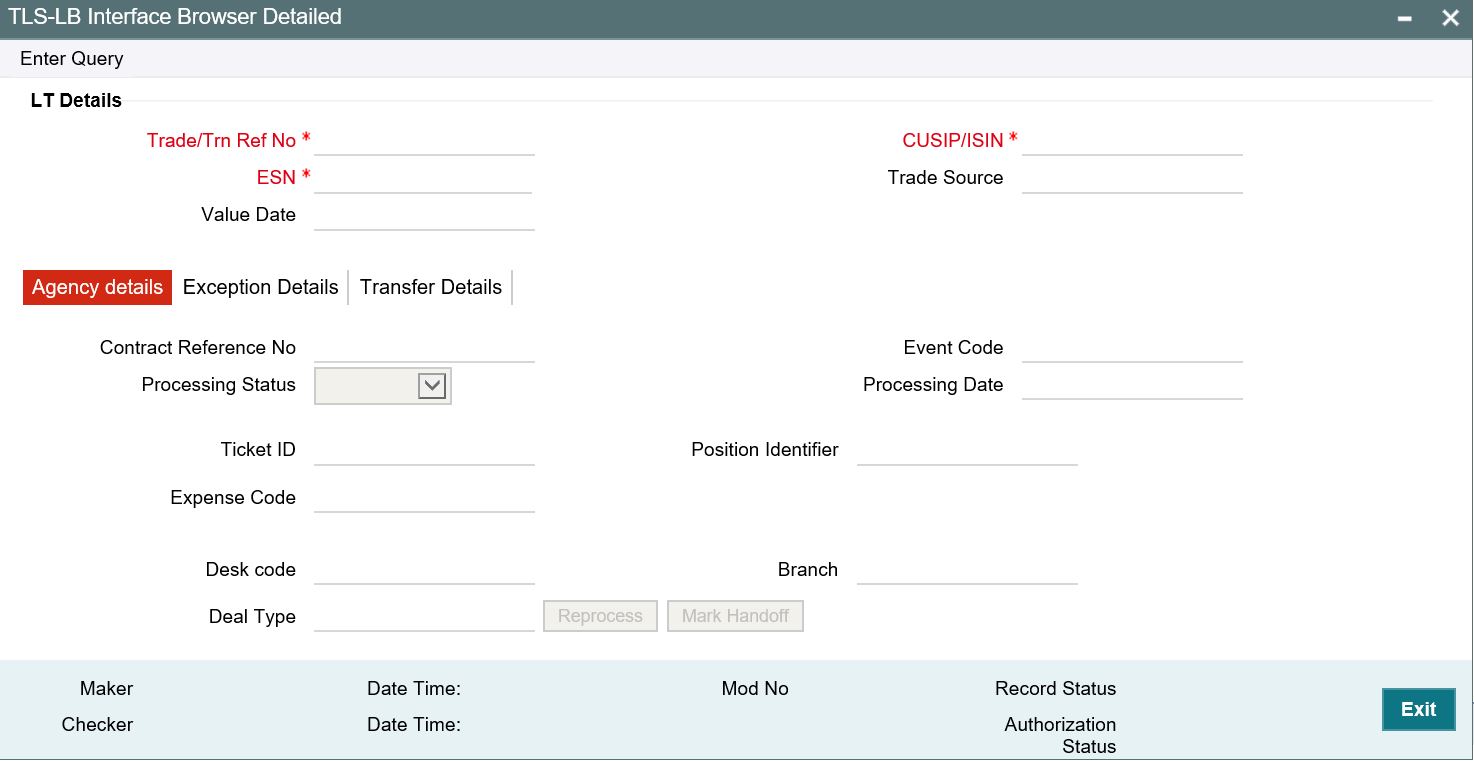 The status of the handoffs from SLT to LB module is viewed in ‘SLT-LB Interface browser’. The SLT trade details and corresponding events on the agency contract are displayed in this screen