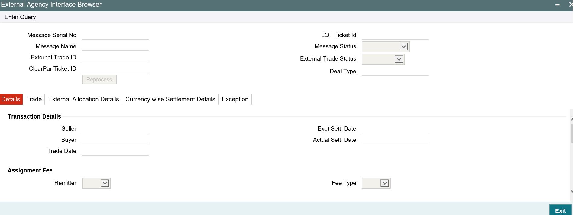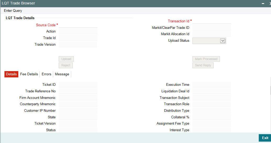 In this screen, you can re-process the handoffs that have failed by selecting the trade reference number and event sequence number of the contract for which handoff should be repeated.