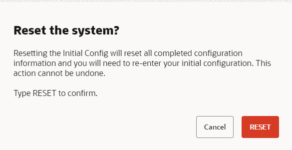 5. Click Reset Initial Configuration in the Documents window to reset the initial configuration. The confirmation window is displayed.