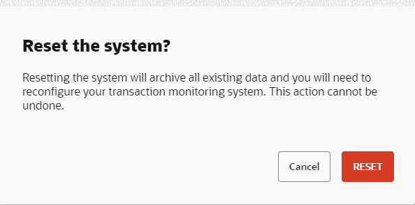 4. Click RESET to reset the system. It will archive all the existing data and you need to reconfigure your transaction monitoring system.