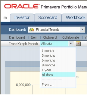 Trend Graph Period: when a Trend Graph is included in the selected tab, the Period drop-down list is shown on the left side of the Toolbar. You can specify the period that is graphically represented.
