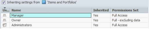 Note: Security settings do not include the parent or any other object besides those selected.