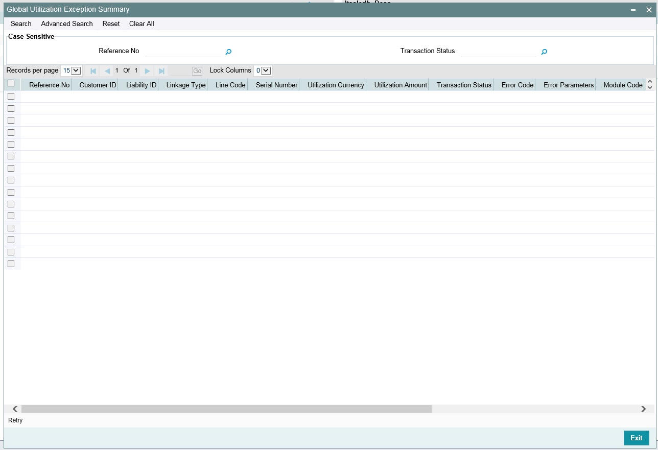 All utilization transactions maybe captured in their own external systems or through the ‘Utilization Transaction’ screen. The utilization details for each transaction taken place in the external product processor have to be sent to Oracle Banking ELCM through Gateway online Inbound or Gateway Batch Inbound process.