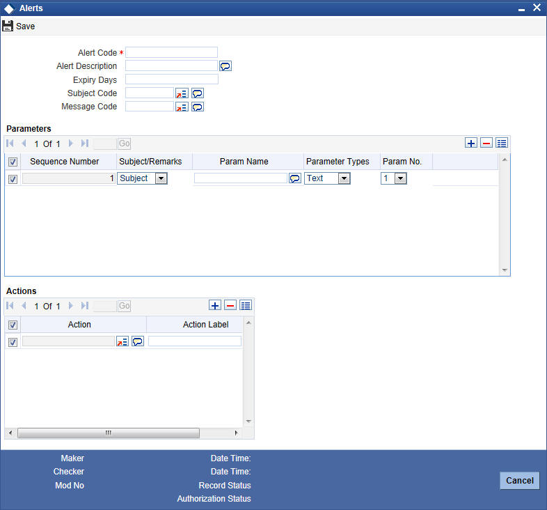 If you have selected ‘Allowed’ under ‘Alerts to be’, then you can maintain the alerts that should be made available to the user.