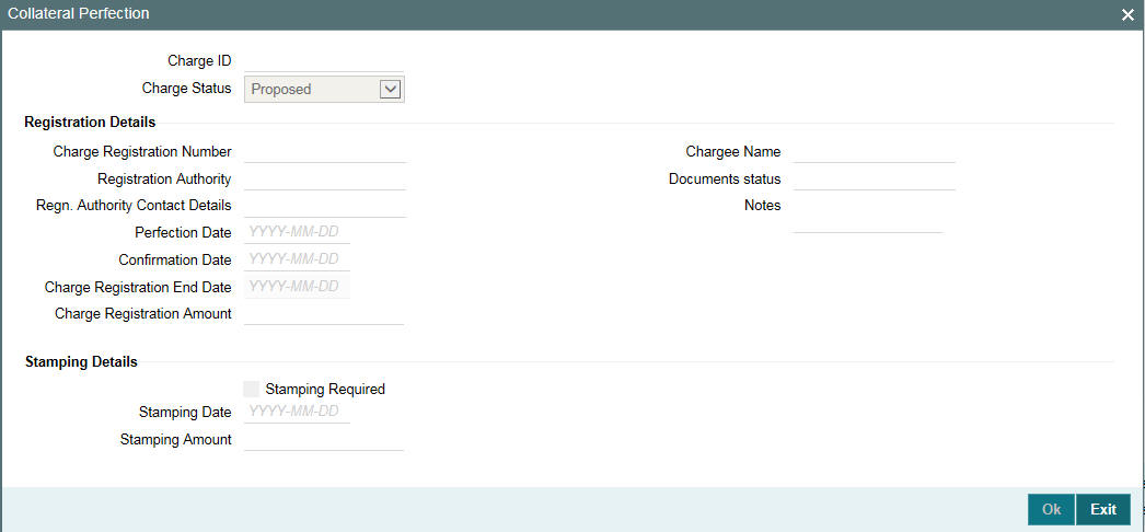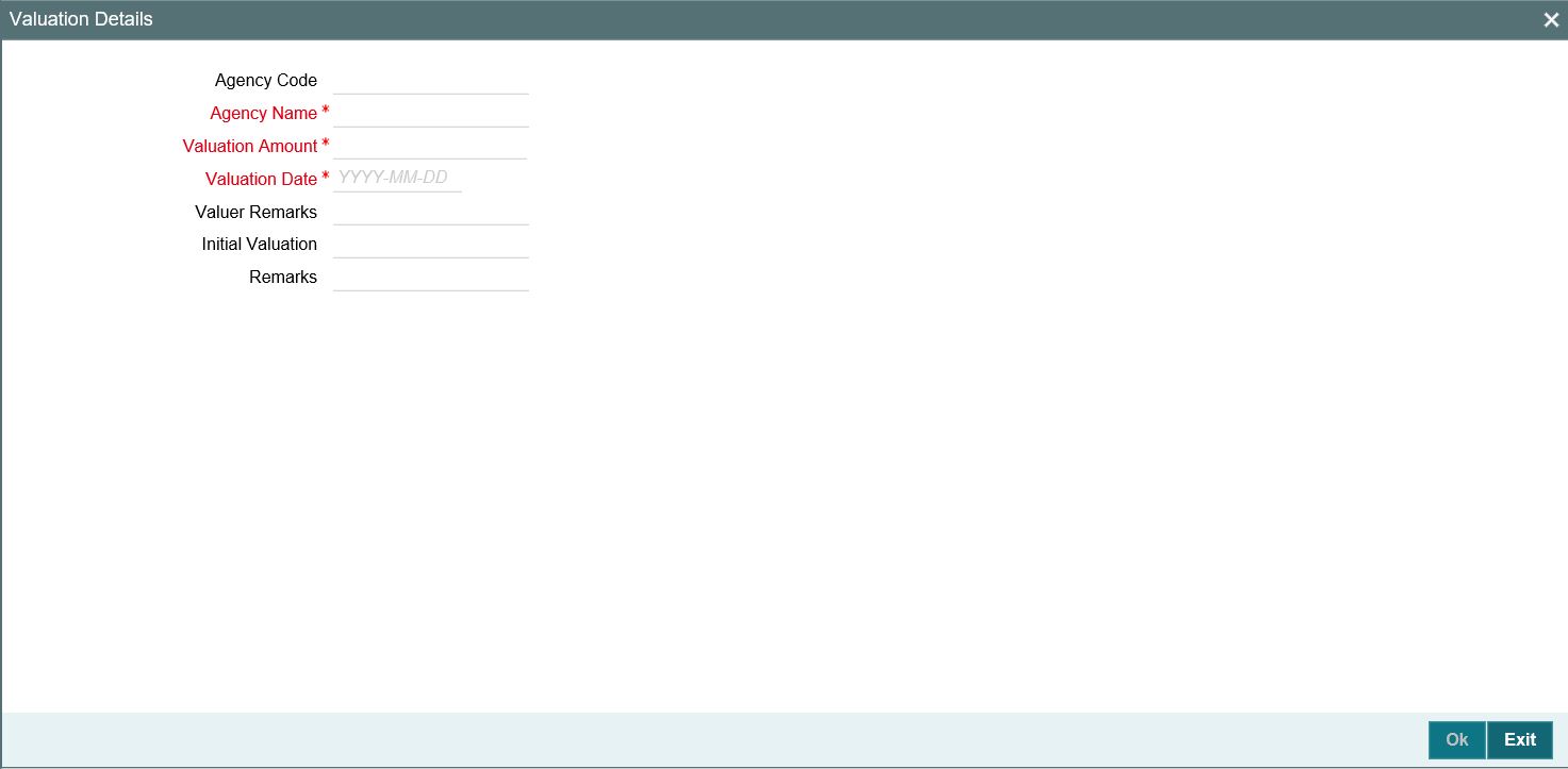Following sub-screens are not relevant to ‘Account Receivable’ type of collateral. Appropriate message is displayed when the same are invoked for entering data at the time of collateral maintenance.