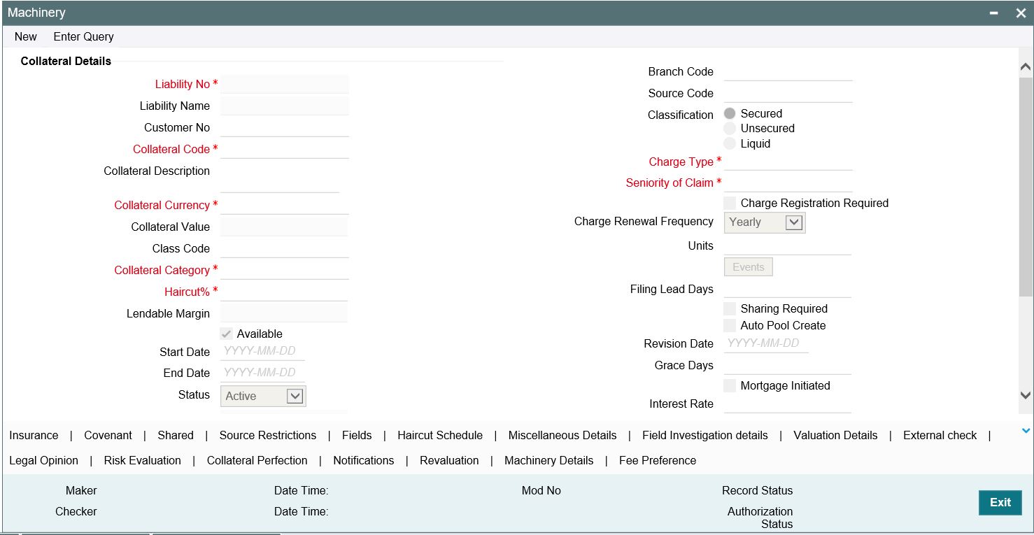 You can define the category to which collateral belongs to using the ‘Collateral Category Maintenance’ screen.