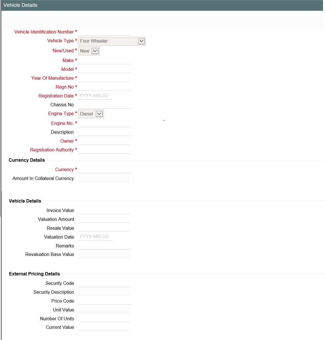 The following collateral types are applicable only for ‘Auto’ revaluation type.