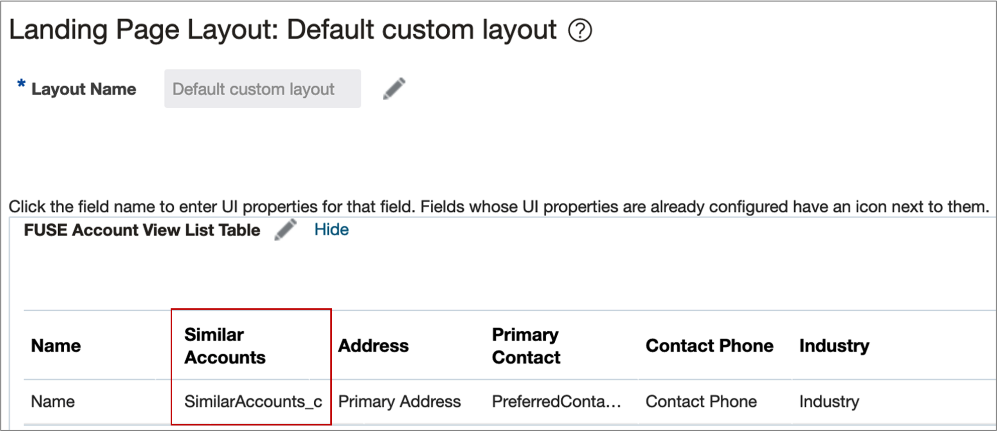 - ランディング・ページ・レイアウトのコピーを作成し、作成した類似アカウント式フィールドを追加します。